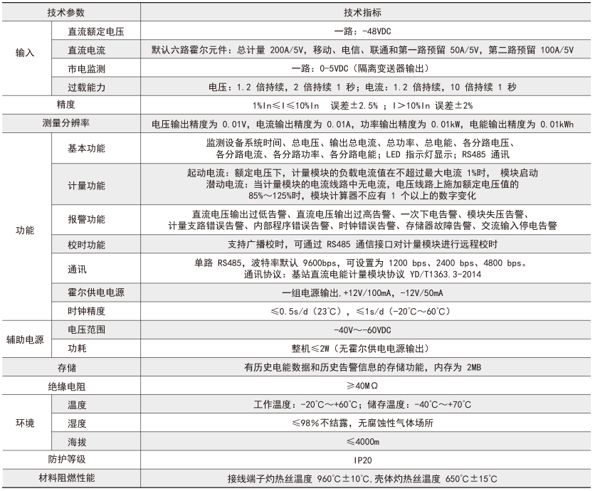 AMC16-DETT 基站直流电能计量模块主要是针对有共享需求,且开关电源无分用户电量计量功能的基站而设计的。仪表可对六个回路的直流电能进行计量,并可为配套的霍尔传感器提供工作电流,同时可通过上位机软件实现零漂校准,具有遥测、遥 信、遥调、实时电量计量、供电质量异常告警、信息存储及处理、信息交互等功能。该模块可分别计量三家运营商的直流用电量,为基站节能改善提供详细的数据依据,为直流配电设备提供分项计量解决方案。